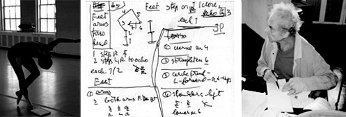 Cunningham noted down the steps in a small notebook, keeping separate track of the way in which feet, legs, arms, torso, and head were to move. Curiously, once he set these steps on the two dancers, Jeannie Steele and Jarrod Phillips, they would in turn record them for study in their own in similar notebooks: but there were no overlaps in any of these idiosyncratic notations.
