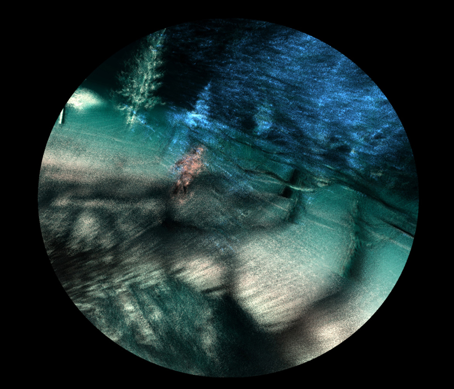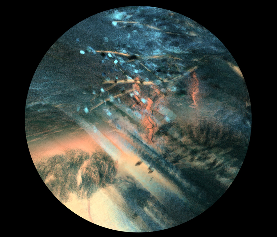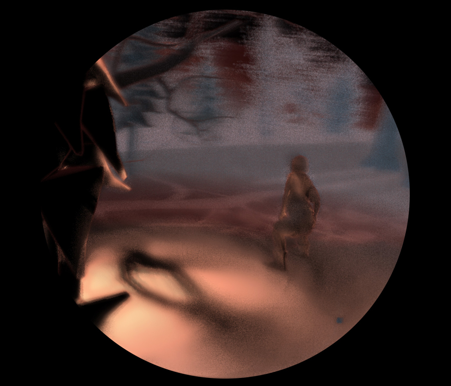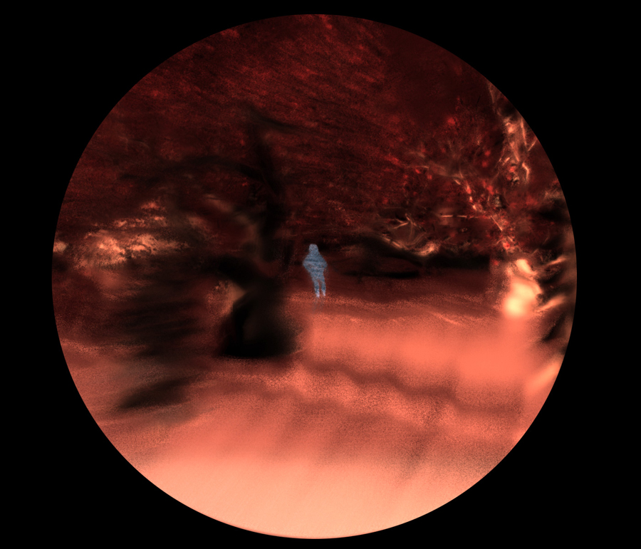 Into the Forest projects painterly imagery that seems to hover off the screen in stereoscopic 3D so that the viewer feels almost inside the imaginary virtual world. Indeed, from time to time, a spotlight comes on in the gallery, and anyone stepping inside it becomes a figure placed in that 3D world and intermingling with the virtual children there. The experience is akin to plunging back into the daydreams of childhood, which can be glimpsed again but never quite recaptured.