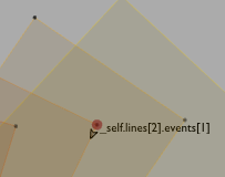But what does _self.tweaks() do? While you are mousing around (specifically, when you release the mouse) you are actually appending code to the property tweak_v which _self.tweaks() executes. This code is the code that takes the contents of _self.lines and modifies it to reflect all of the operations you've done with the mouse. Think of this as a code-based history, which you can edit, comment, and so forth. When you complete an edit, your code box is executed, and via (_self.tweaks()) your edit is also executed.