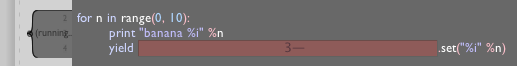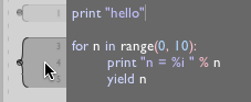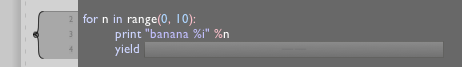 In Field's text editor if you highlight this and press command-return to execute it, you'll get an error. It isn't quite valid Python. What you really need to do is to write something like: