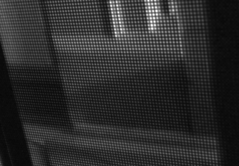 If you are using a color camera, you'll notice some terrible moire patterns on this image. And, of course, you'll notice that it's not in color. Up close it looks like this: