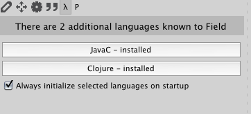 First (assuming that you've enabled jsrscripting in the plugin manager) note the new palette representing the "additional languages" that Field knows about:
