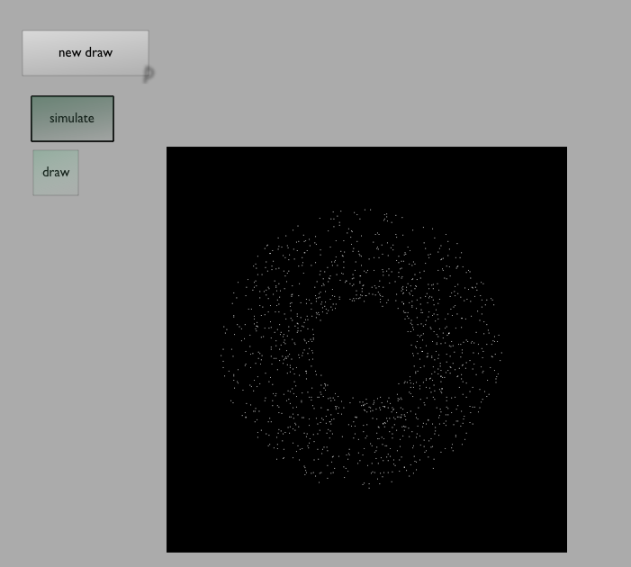 If we like we can go further and split drawApplet into two boxes — one that calls w.walk() and another that draws the drawing. Now we can keep the "simulation" running while starting and restarting the drawing code.