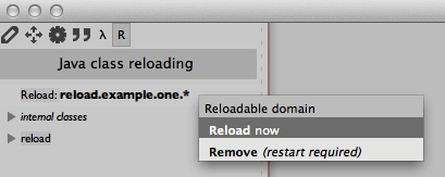 And, yes, you'll have to restart one last time to make these classes reloadable. Upon restart (and rerunning the code you have that loads the classes), you'll see a new entry in that list the represents that package / class. To reload it, right click on it (or just double click)