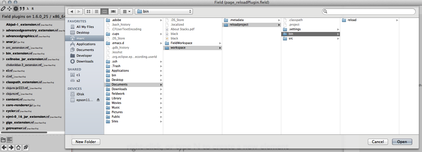 Up until now, this has worked best if these two phases of development — writing Java, and working in Field — don't overlap so much. Because every time you change a Java class, you need to restart Field to see the changes.