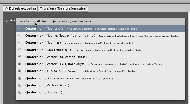 For example, wondering how to get a Quaternion? press command-period after typing Quater: