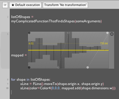 What normally happens when confronted with this, is that I execute the first line listOfShapes = ... and then pop open a new visual element and start writing things like:
