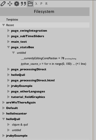 Field encourages you to use visual elements for anything and everything — for example the TopologyPlugin (one of the tools on the mouse tools palette) even uses them for the edges between nodes; since one often constructs "visualizations" of data over time that you end up wanting to edit and clean, these visualizations should be made out of visual elements. Clearly, in order for this to happen, making, editing and deleting visual elements needs to be easy. This pages collects the range of ways of doing this.