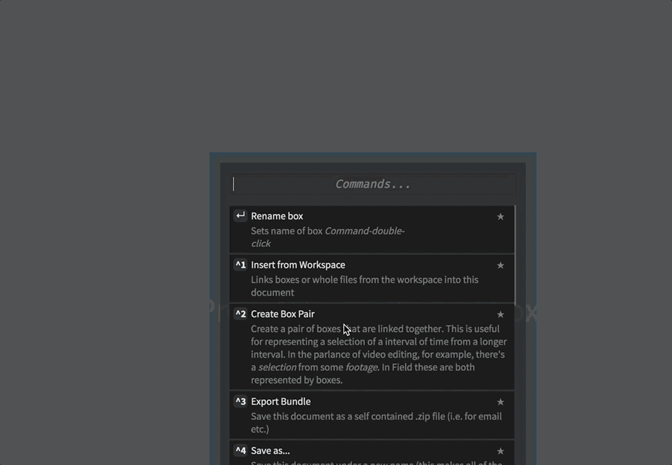 After it has been loaded you can draw directly on the canvas whenever there’s a box that’s selected, and you are holding down p. Conceptually this is adding a line called _.pencil to a box (and as _.lines.pencil). So boxes can ask of the FLine that’s been drawn into them by asking for _.pencil. Additionally, this line moves when you move the box that it’s in around. You should remember that n quickly lets you make a box under where the mouse is. This should let you move around making boxes, selected them and drawing into them.