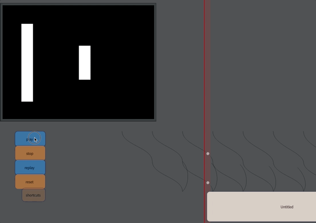 var intersections = _.intersectX(_.time.frame.x)The interesting call here is _.intersectX(_.time.frame.x). This figures out the intersection between a vertical line at _.time.frame.x and any line in this box that’s marked as .notation=true. (Remember that _.time.frame.x is the position of the ‘red line’ time marker). intersections ends up being a list of points that intersect this line. We’ll draw the points to prove that it’s working: