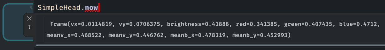 SimpleHead.now contains the current set of values for the last frame that was analyzed. These include: