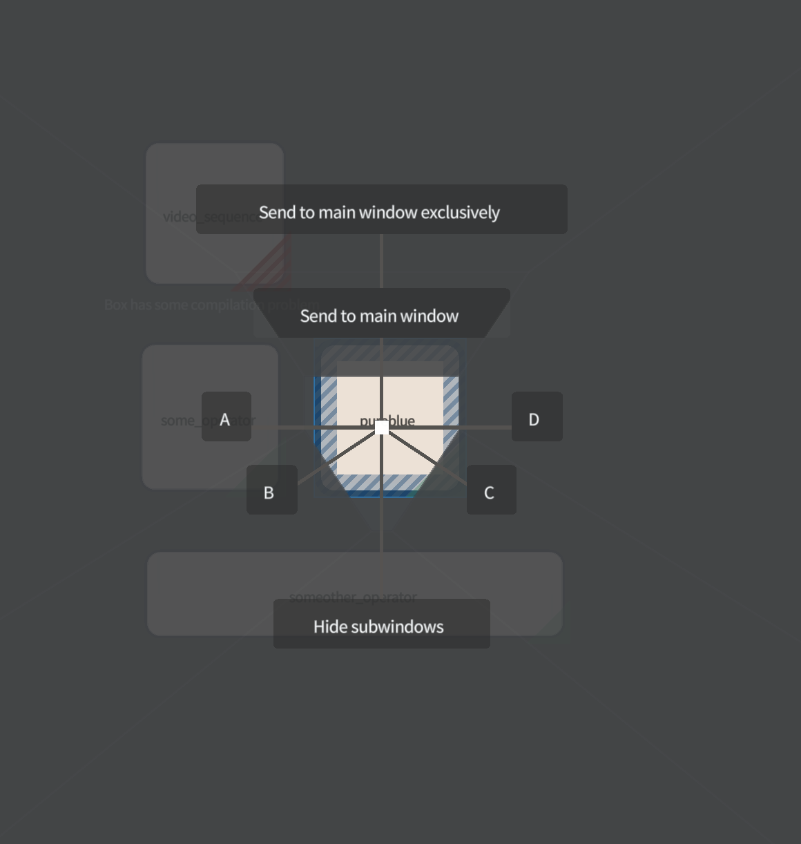 Texture Operators comes with a little ‘windowing system’ that lets you send the output of boxes to the main window. Select a box in Field and press and hold space, you should see: